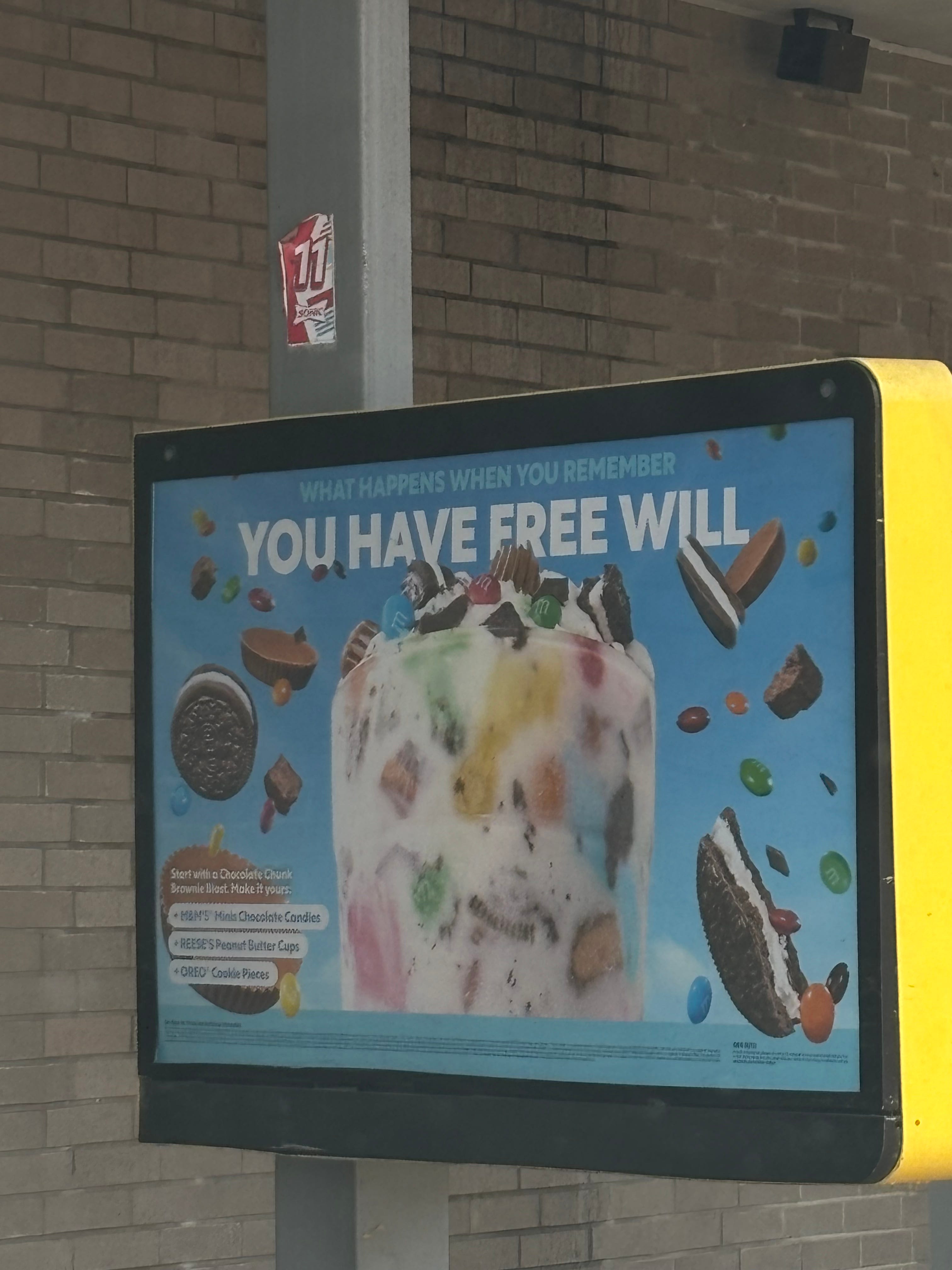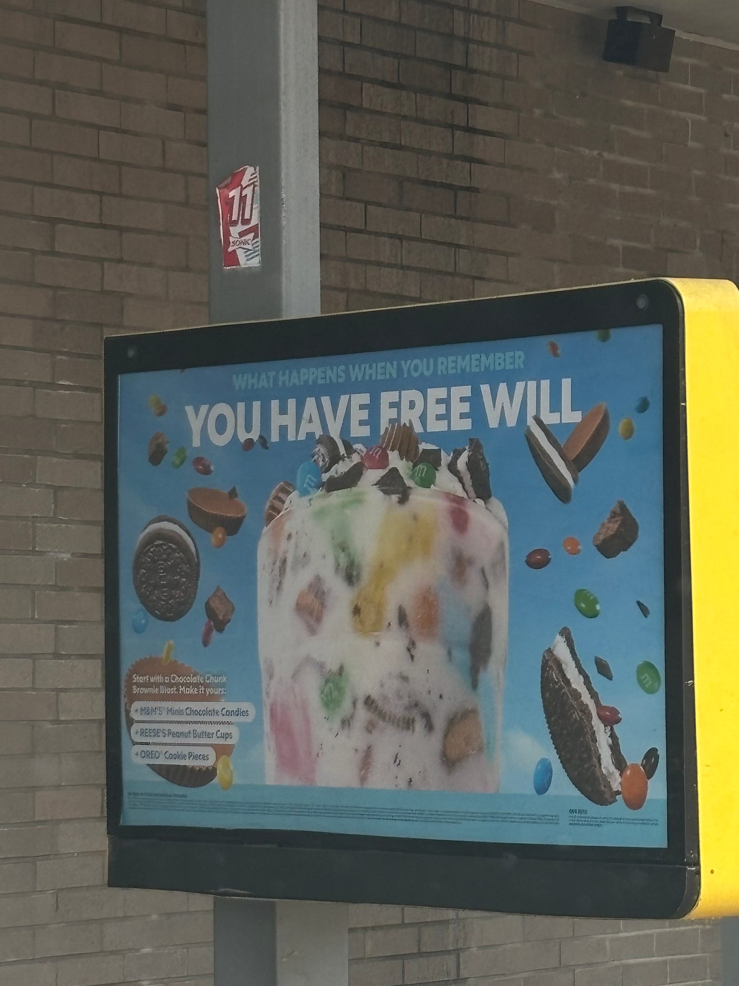 We are in the season of Lent, and at our Shrove Tuesday pancake supper + gumbo cookoff our priest reminded us that our attempts at self-improvement have the habit of reminding us how bad we are at it. This picture that Jenoa snapped when we were at Sonic the other day captures this truth well: